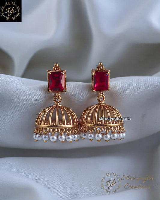 Premium light weight ruby, Emerald jhumkas
