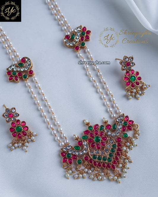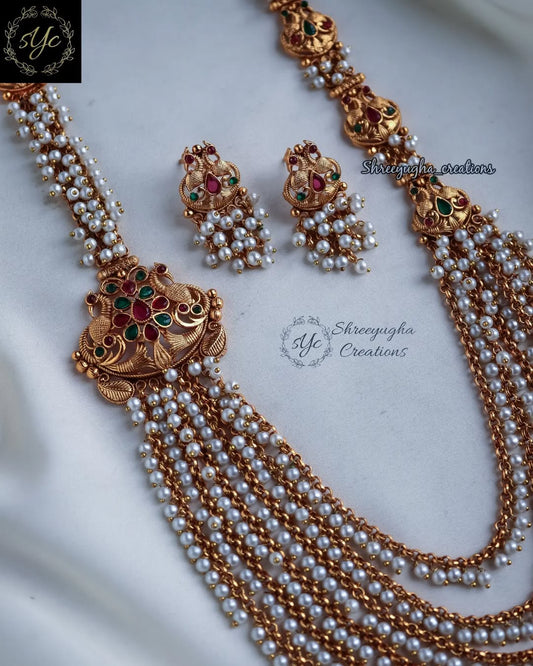 Antique gold Ruby, Emerald Lakshmi long haram set